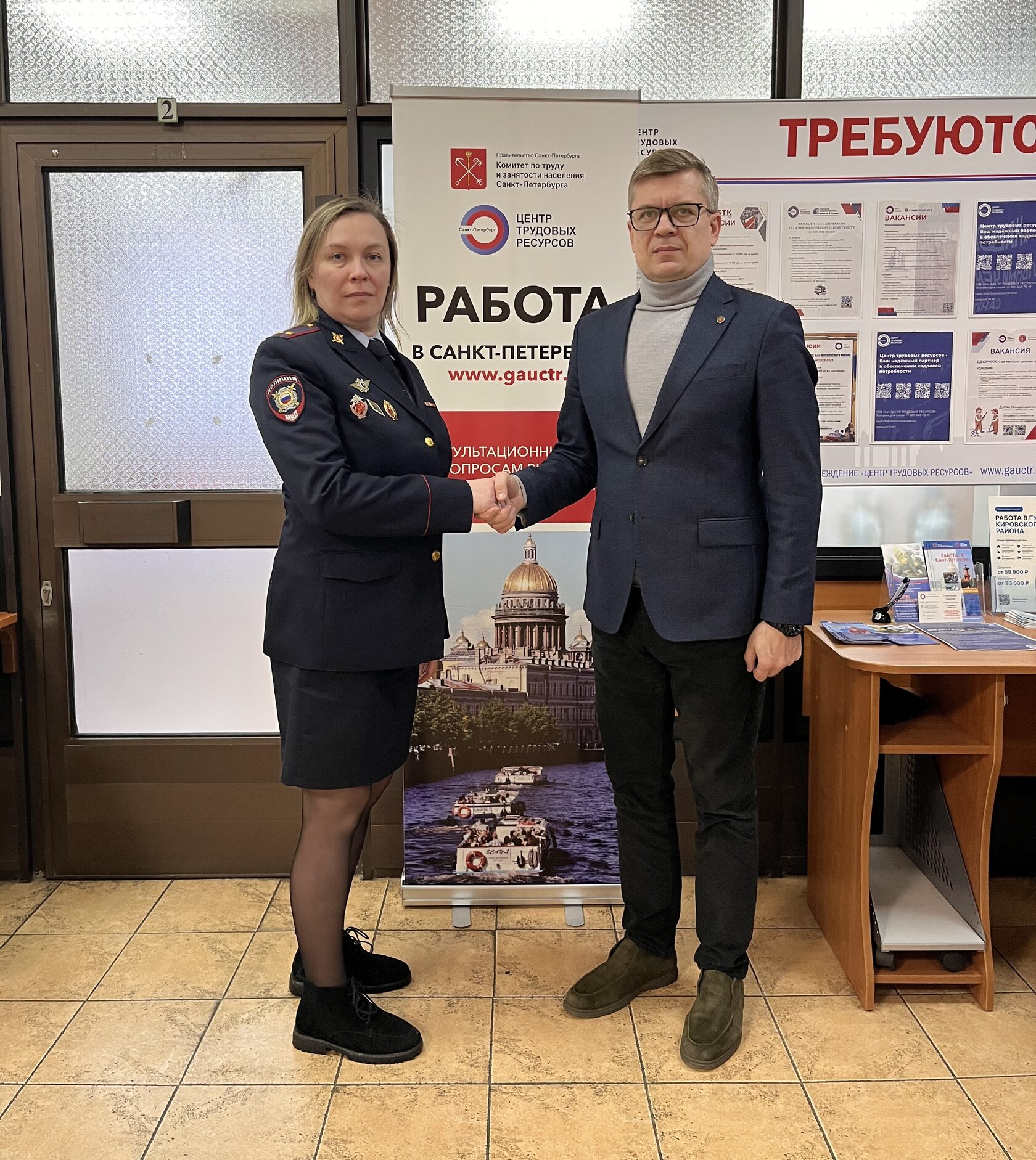 12 февраля на территории Центра трудовых ресурсов состоялась маркетинговая встреча начальника отдела трудовой миграции граждан РФ Дмитрия Рыжкова с заместителем начальника 8 отдела УМВД России по Кировскому району г. Санкт-Петербурга Екатериной Ткачевой.
