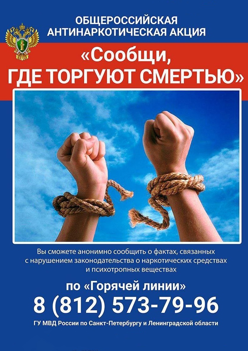 С 13 по 24 октября 2025 года на территории Санкт-Петербурга и Ленинградской области проходит II этап Общероссийской акции «Сообщи, где торгуют смертью».