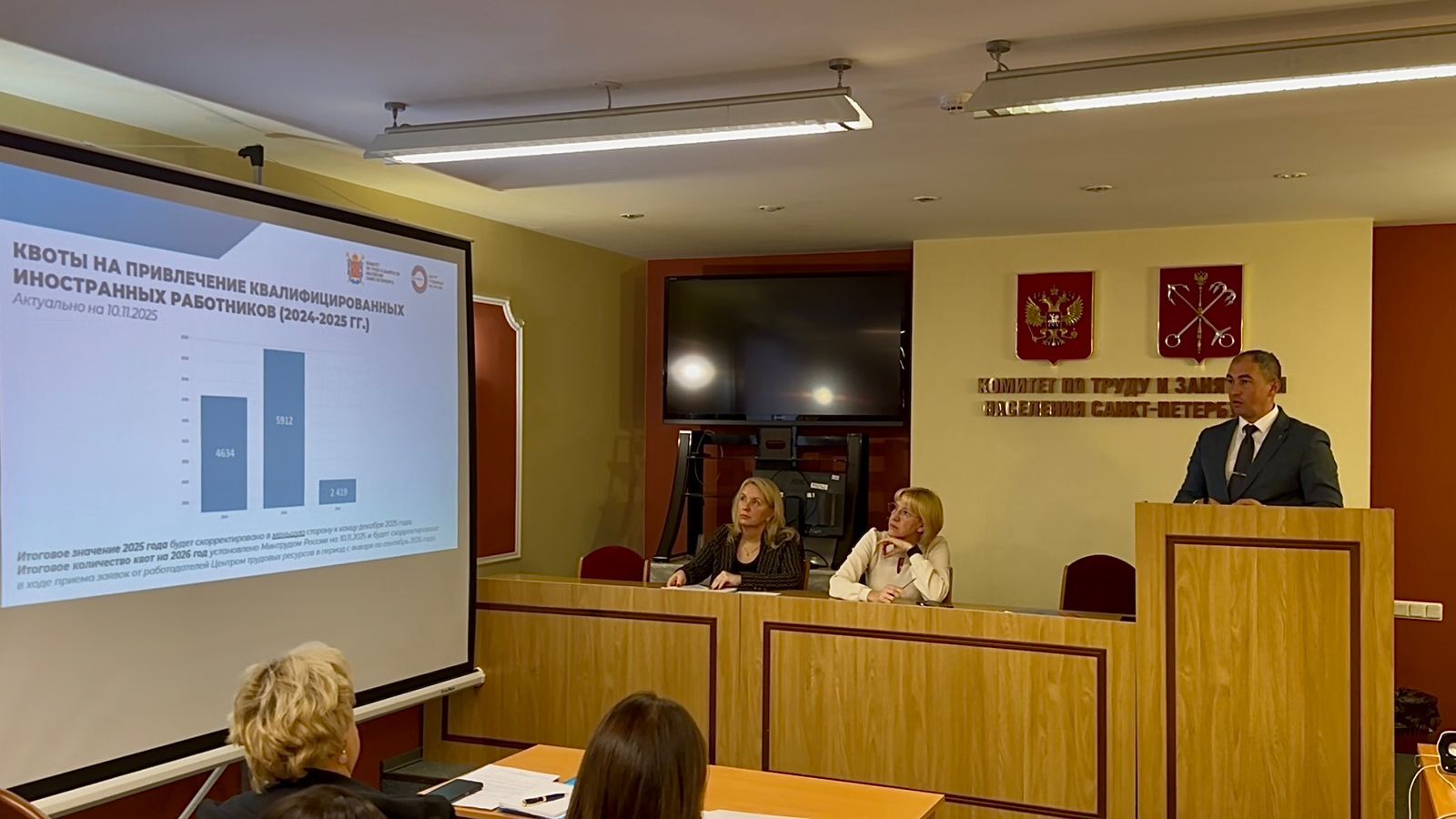 Помимо этого, директор Центра осветил нынешнее состояние процедуры квотирования по вопросам привлечения квалифицированных иностранных сотрудников. Кроме того, Алексей Чистяков рассказал о деятельности Центра в направлении организации трудовой миграции из регионов РФ и профориентации молодежи Санкт-Петербурга.